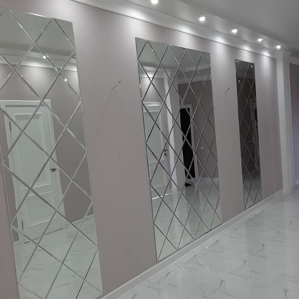 Использована зеркальная квадратная и треугольная плитка с фацетом.